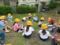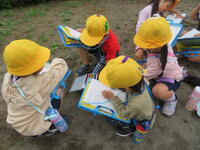 今日は町探検。いつも見慣れた町並みですが、お友達やクラスの仲間と歩くと、少し違った景色に見えたりするのかな。仲良く学校に戻って来れたら満点です。