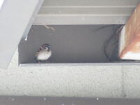 体育館入り口に「すずめさんの巣」があります。リコーダーの音色にあわせるかのように、すずめさんが家族で歌っているようでした。