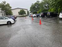 少し早めての下校となりますが、やむを得ずお車でお子様をお迎えする方は十分にご注意ください。正門付近はかなり水がたまっています。また、渋滞も予想されますので、ご留意ください。