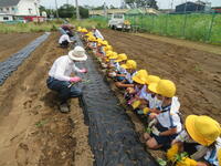 先週末の荒天とは打って変わり、本日は青空に恵まれました。1年生はサツマイモの苗を植えました。畑の先生方のお話をしっかりと聞き、ていねいに植えました。1年生のみなさんと同じように立派に成長していくでしょう。ぐんぐん伸びて、おいしいお芋になりますように!