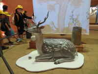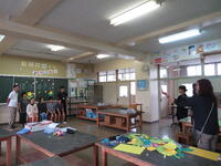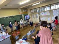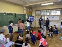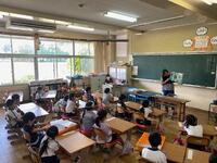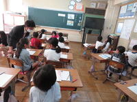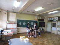 1年生が校舎内をくまなく歩き回る、「学校探検」が行われました。数名ずつのグループになり、職員室をはじめ保健室や様々な教室を自分たちの目で確認していました。校長室でには、トロフィーや書籍が置かれている棚に、校庭に大きくそびえ立つ「おさき山」のミニチュアがあります。そのミニチュアに子どもたちは興味津々でした。
