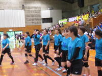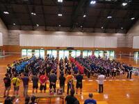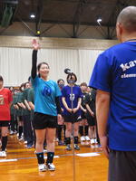 清水公園の体育館、時折強い雨音が聞こえましたが、それ以上にバレーボールの選手たちの声、そして声援を送る家族やチームメート、関係者の声が館内いっぱいにこだましていました。この日は、気温、湿度ともに高く、体育館はまさに熱気にあふれていました。そんな中でも、尾崎小学校のバレーボール選手たちは元気いっぱいにプレーしていました。なんと、選手宣誓は尾崎小の選手からでて、素晴らしいパフォーマンスでした。宣誓の一部を紹介します。