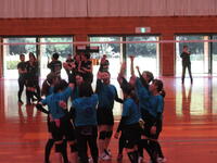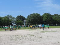 「宣誓、私たち選手一同は、・・・・日頃のストレス解消と脂肪燃焼のために・・・ 頑張ります!」笑顔いっぱいに宣誓してくださいました。その勢いで、初戦は快勝しました。お昼をはさんで次の試合・・・残念、接戦でしたが惜しくも敗退しました。しかし、選手のみなさんは、とても清々しい表情でした。選手のみなさん、相手チームばかりでなく、暑さやや湿度との戦い、ご苦労様でした。また、応援してくださった、PTA本部さん、役員さん、先生方、そして選手の家族のみなさん、監督、コーチのスタッフのみなさん、ありがとうございました。