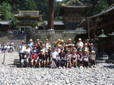 日光も暑い朝となっています。子どもたちは元気に朝ごはんを食べ、退館式を終え、東照宮に出発しました。
