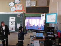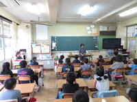 今日は3年生、4年生、けやき学級がお話の世界に入りました。どの子も真剣な眼差しで聞き入っていました。写真をとりながらですが、私もお話の世界に入り込んでしまいました。パレットさんのおかげで、子どもたちの想像力などもさらに大きくなったと思います。もう1枚の写真は、音楽の授業です。