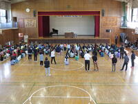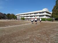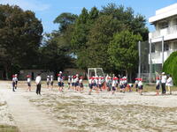 この校庭での写真は先日行われた児童会主催の「陸上選手を励ます会」の写真です。