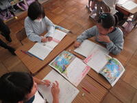 5年生は外国語の授業で、テストをしていました。4年生は教頭先生の書写の授業でした。3年生は音楽の授業でした。けやきさんは、交流でそれぞれの学年で授業を受けている児童もいました。どの子も真剣に、そして楽しそうな表情で取り組んでいました。