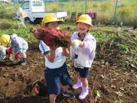 1年生、本日はイモ掘りです。長靴なども用意し、畑の先生のお話をしっかりと聞いて、取り組みました。かわいいお芋さん、大きなお芋さん、様々なお芋さんがたくさんとれました。おいしく召し上がってくださいね。