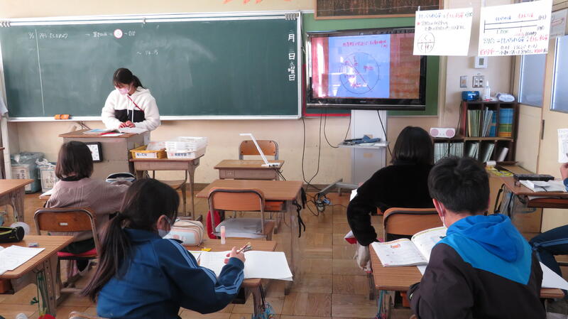 5年生は、高学年の算数の“難所”「割合とグラフ」に取り組んでいます。円グラフがうつっていますね。