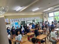 朝一番で応援練習でした。6年生は1年生のクラスにいき、一緒に練習しました。6年生として、学校のリーダーとして、1年生に丁寧に指導していました。赤、白ともに応援団長を中心に元気な声を出し、元気な歌で盛り上げていました。5年生は2年生のクラスに、4年生は3年生と一緒に練習でした。
