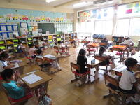 漢字のテストでは100点目指しての再テストに取り組むクラスや、ブレインストーミングを用いた学習を行い、関連する言葉を次々にあげていくクラスなどがありました。どのクラスも落ち着いた雰囲気で授業が進められていました。