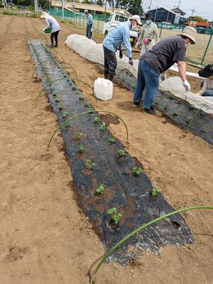 先生に丁寧に教わり、見守られ、、、、尾崎っ子も、自信を持って植えていました。