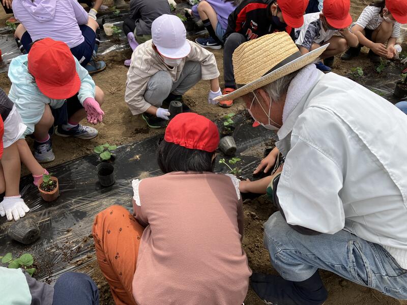 5/6(金)「畑の先生、ありがとう!」3年生が、枝豆の苗植え体験を実施!