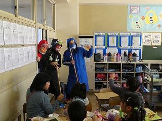 尾崎小学校へも「赤鬼」「青鬼」「黒鬼」が現れました。