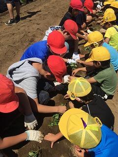地域の石川さん、遠藤さんをはじめボランティアの皆さんが手伝ってくださり、子どもたちも上手に植えることができました。
