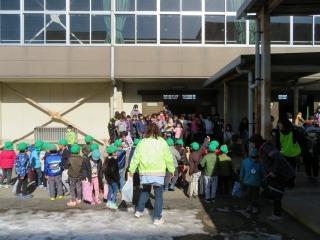 体育館の中でお別れをしたのですが、名残惜しくて体育館の外にまでお見送りにでていました。