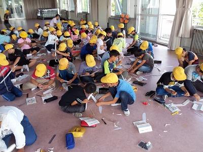 教室で製作し、校庭で飛ばしました。30m位とびました。