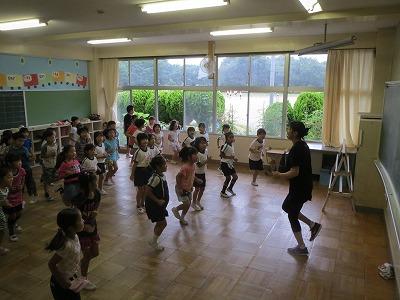 霜多養護教諭の指導で、音楽に合わせ楽しそうにダンスをしています。