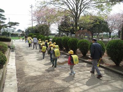 1年生が、初めての方面別集団下校を行いました。