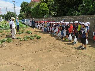 今日は、3年生が尾崎っ子農園へ枝豆の収穫に行きました。