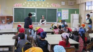 会の後、児童と一緒に給食を食べながら、いろいろなお話を聞かせてくださいました。