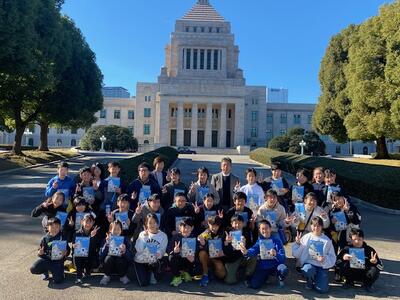 国の大事なことを決めたりする国会議事堂に入り、議員さんの思いや議会場などを体感しました。お昼は議員会館で昼食をとりました。朝早くからの活動であったせいか、子どもたちはお腹ペコペコだったことでしょう。ハンバーグカレーライスをあっという間にたいらげていました。