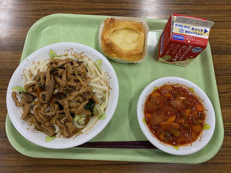 <メニュー> 冷やしうどん、牛乳、ラタトゥイユ、さくさくレモンパイ