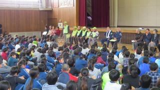 会の後、児童と一緒に給食を食べながら、いろいろなお話を聞かせてくださいました。