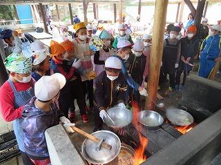 【朝食を食べ終わった後は、野外炊飯活動です】