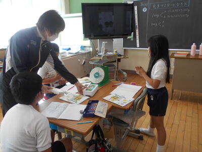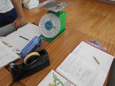 3年生は、はかりを使って重さの見当をつける学習をしています。
