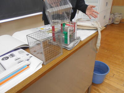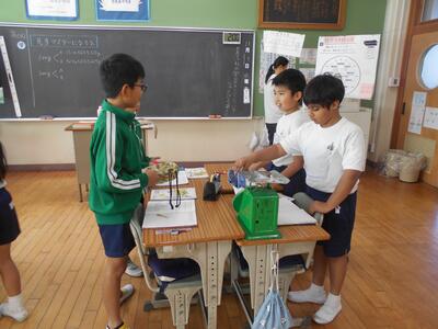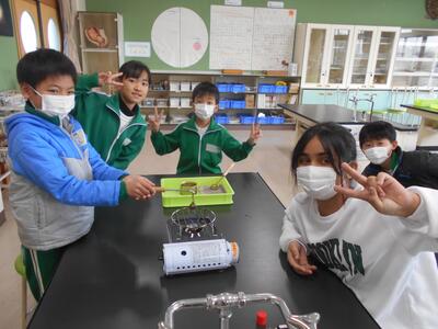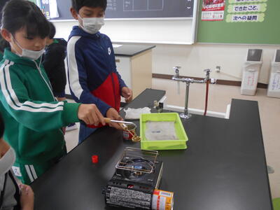 4年生は、理科の学習です。金属は熱すると体積が変わるのかを実験しています。