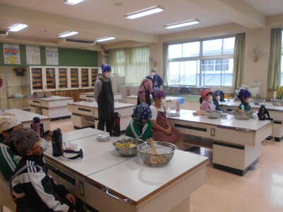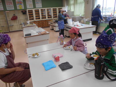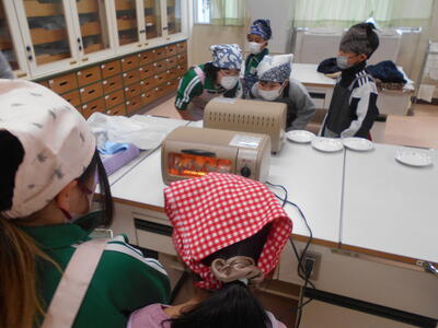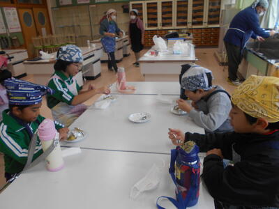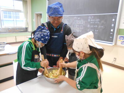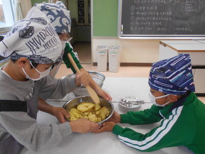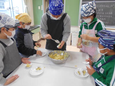 あおぞら学級で調理実習を行いました。学校で収穫したさつまいもを使ってスイートポテトをつくりました。おいもをつぶしたり、盛り付けしたりなど楽しく調理実習ができました。とってもおいしくできましたね!