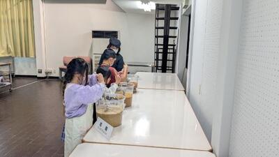 3年生は、リットルますを使って1より小さい数の学習です。小数点の書き方など学びを深めていました。