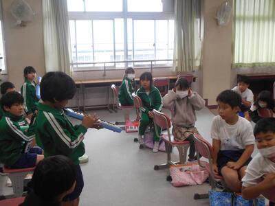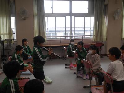 2年生の音楽では、鍵盤ハーモニカの発表をしています。リズムにのって全員が一人ずつ発表を行いました。