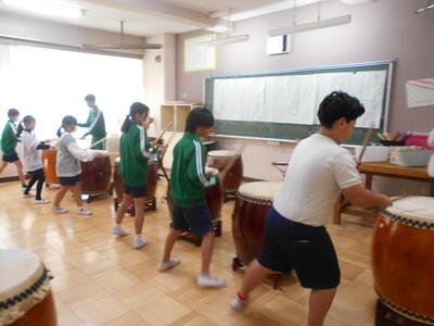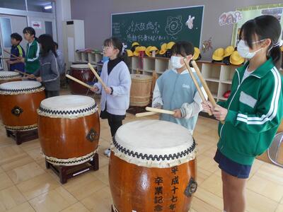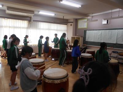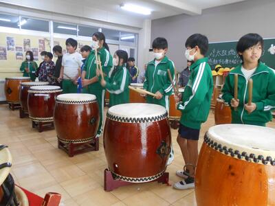 午後は、5年生が中学校へ交流に行きました。伝統ある和太鼓を体験させていただきました。関宿フェスティバルでの素晴らしい演技を目の当たりにしていたので、自分も太鼓を叩きたいと思っている児童が多く、とても貴重な体験ができました。