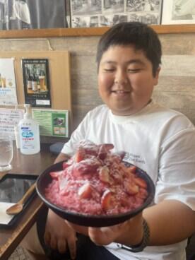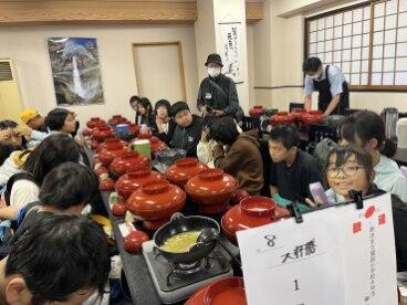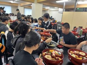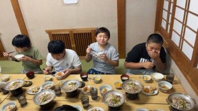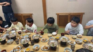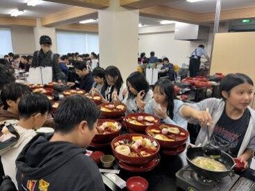 現在お昼ご飯中です。お昼ご飯の大杯膳の大きさにびっくりですね!