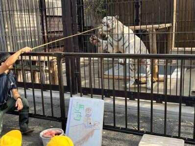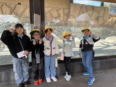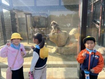 グループごとの活動をしています。動物の森を中心にモンキーワールドやキャットワールド、ヒグマの森などを見学しています。
