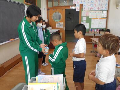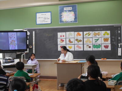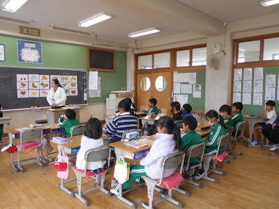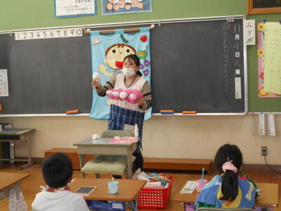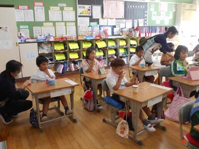 1年生は歯科衛生士さんから歯みがき指導をうけています。歯についてのお話や汚れ調べを行いました。特に染めだしでは、歯が真っ赤になってみんなびっくり!これからも丁寧に毎日歯をみがきましょう!
