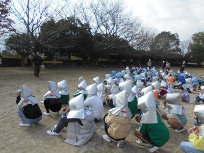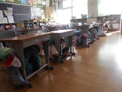 本日業間に避難訓練を実施しました。地震が発生後、火災があったと想定しての訓練です。