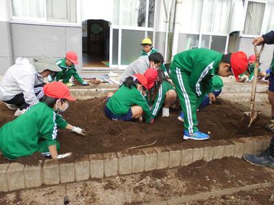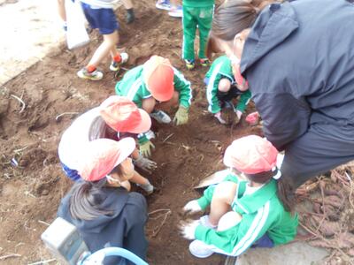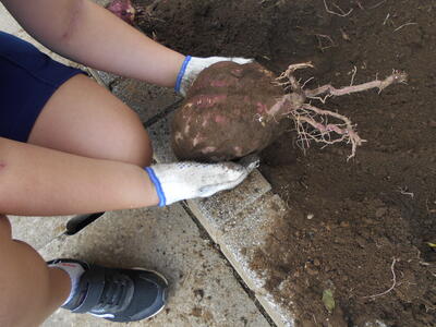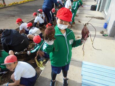 今日は1・2年生とあおぞらのみんなで芋掘りを行いました。大きい芋も収穫できて大成功です!
