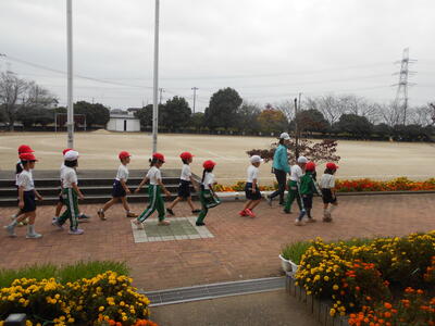 1・2年生は11月29日に行われる持久走記録会のコース確認をしています。特に1年生は初めて走るコースなので念入りに確認をしています。