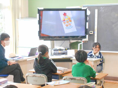 4年生は外国語活動で「What do you want」の単元を学習しています。自分の欲しい果物を使ってパフェをつくり、発表しました!
