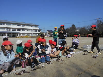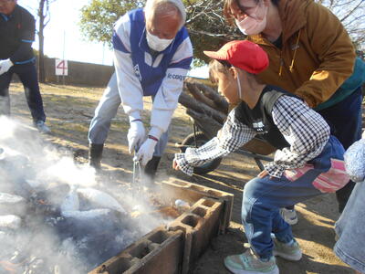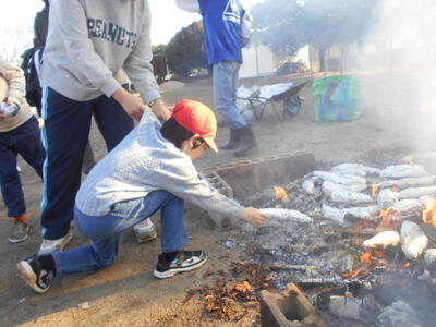 1・2年生とあおぞら学級でやきいもを行いました。先週収穫したお芋をぬらした新聞紙で包み、その後アルミホイルで包んでたき火をしました。