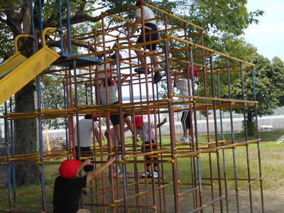 バレーボール、サッカー、ブランコ、ジャングルジムが関宿小の子どもたちの人気の遊びです!