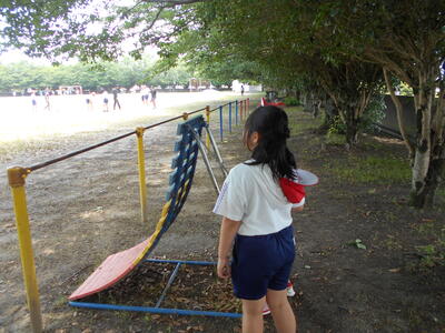 昨夜の雨で水たまりが心配されましたが、業間休みはグランドがかわいて外で元気に遊んでいます。
