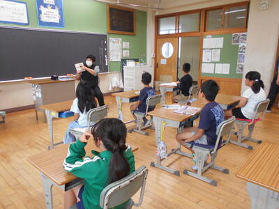 3年生は授業で外国語活動が始まりました。週に1時間、担任の先生とALTの先生と一緒に学習をします。今日は「あいさつ」の学習です。外国で日常的に使われているいろいろな国の挨拶をしました。恥ずかしがっていましたが、どんどん積極的になっていきました。