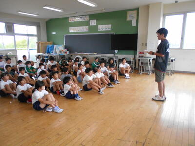 本日の午後に1年生を迎える会がありました。児童会を中心にここまで一生懸命練習を重ねてきました。1年生と6年生が手をつないで入場した後、1年生は元気に手を挙げて大きな声で返事ができました。