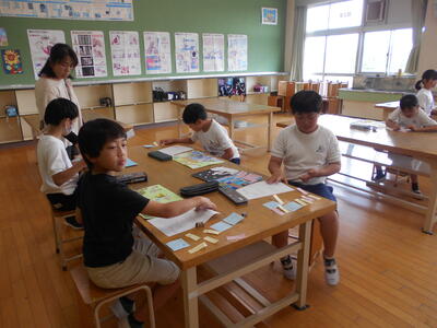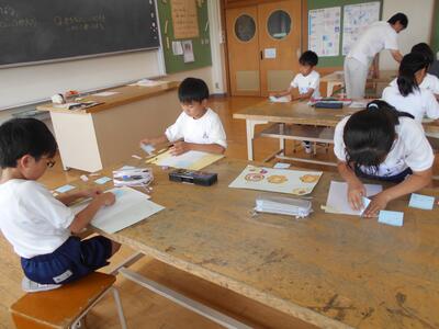 4年生の図工では、「友達の作品の良いところ見つけ」を行いました。自分の作品をたくさんの友達に褒めてもらって、みんなとっても嬉しそうでした。