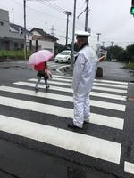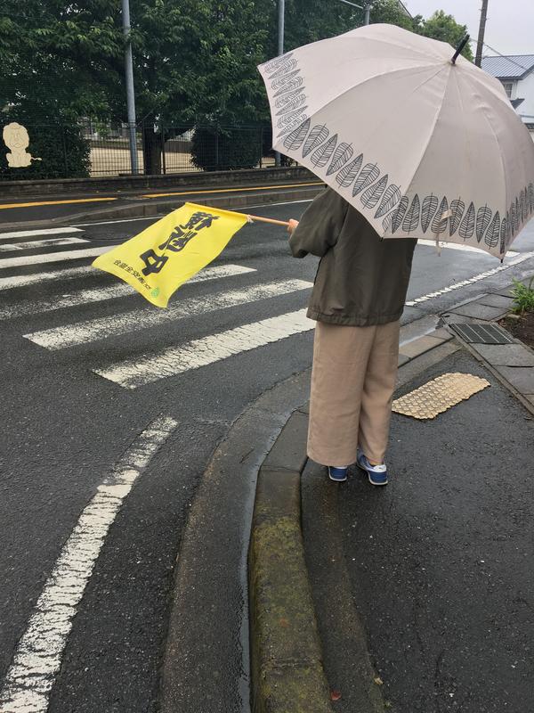 こちらは交差点に毎日立ってくださっている交通指導員さん。雨の日も、風の日も。大変ありがたいことです。