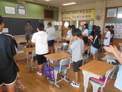 本日、夏休み前集会が行われました。校長先生からは、事故のない夏休みにしてほしいこと、9月1日に笑顔で全員が登校してほしいことのお話がありました。